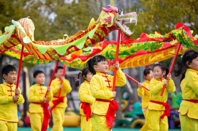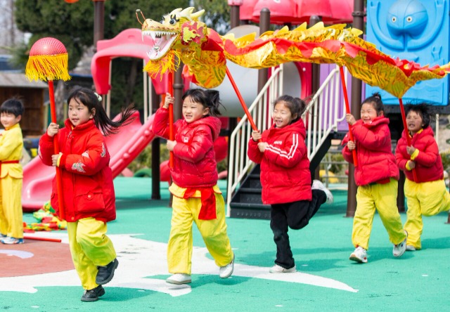 二月二,龍?zhí)ь^。3月11日,江蘇省海安高新區(qū)海南幼兒園的孩子們通過舞祥龍、賽龍舟,吃龍食,剃喜頭等一系列民俗活動,感受熱鬧的節(jié)日氛圍,體驗傳統(tǒng)文化的快樂。中國教育報-中國教育新聞網(wǎng)通訊員 翟慧勇 攝