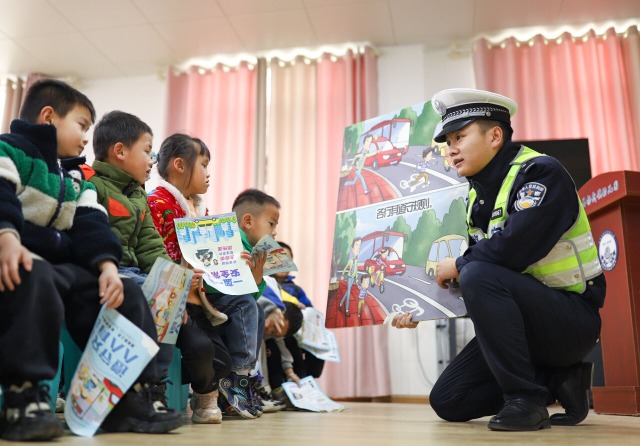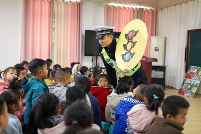 3月11日,貴州省黔東南苗族侗族自治州丹寨縣公安局交通警察大隊宣傳民警走進轄區(qū)揚武鎮(zhèn)幼兒園開展交通安全宣傳活動,宣傳民警通過通俗易懂的語言,為小朋友們講解如何安全過馬路,如何安全乘車,并利用“紅燈停、綠燈行、黃燈亮了等一等”“斑馬線、生命線、過馬路前看一看”等內(nèi)容對孩子們開展宣傳教育,調(diào)動孩子們學(xué)習交通安全知識的積極性,為孩子們養(yǎng)成遵守道路交通法規(guī)的良好習慣打下基礎(chǔ)。中國教育報-中國教育新聞網(wǎng)通訊員 陸德華 攝