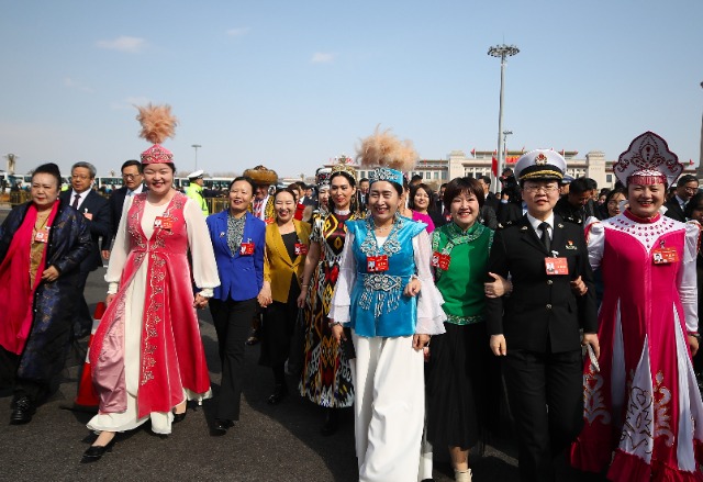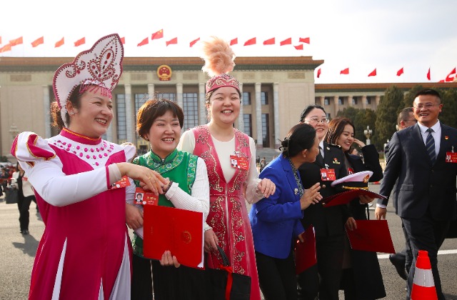 3月11日,第十四屆全國人民代表大會第二次會議在北京人民大會堂舉行閉幕會。這是全國人大代表走向人民大會堂。中國教育報-中國教育新聞網(wǎng)記者 張學(xué)軍 攝