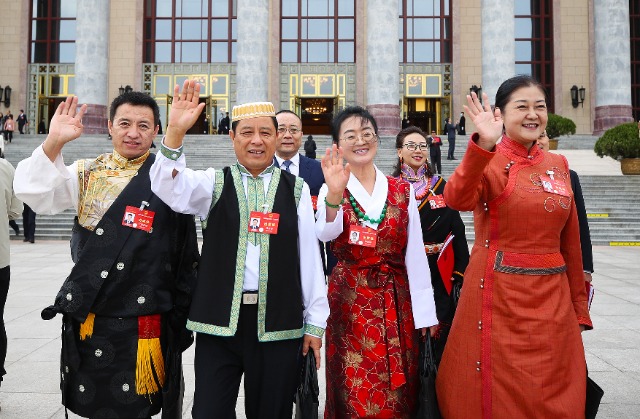 3月11日,第十四屆全國人民代表大會第二次會議在北京人民大會堂舉行閉幕會。這是閉幕會后,代表們走出人民大會堂。中國教育報-中國教育新聞網(wǎng)記者 張學(xué)軍 攝