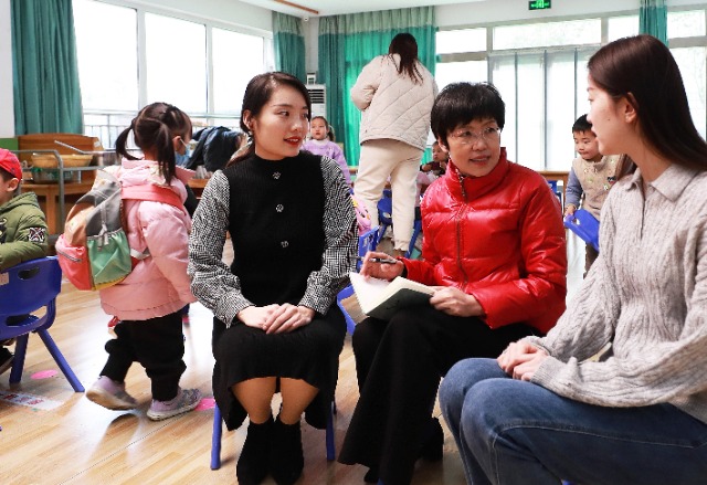2023年2月21日,全國人大代表、山東省臨沂市北城小學黨總支張淑琴(右二)到幼兒園調(diào)研學前教育。