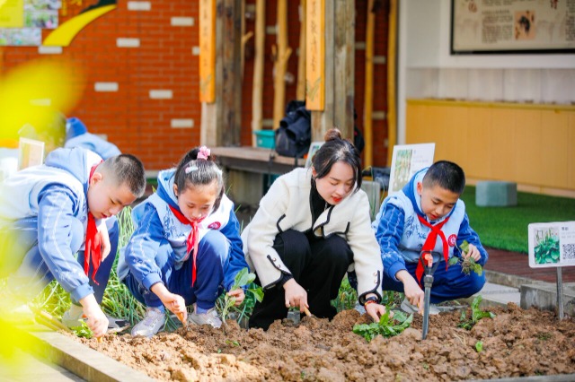 3月12日,適逢植樹節(jié),福建省福州市鼓樓區(qū)安泰街道斗南小學(xué)的百草園內(nèi),社區(qū)中醫(yī)志愿者正在指導(dǎo)孩子們種植中藥,感受中醫(yī)藥文化魅力。近年來,斗南小學(xué)將中醫(yī)藥文化引入校園,積極開展“中醫(yī)藥伴我成長(zhǎng)”為主題的中醫(yī)藥文化進(jìn)校園活動(dòng),通過組建中醫(yī)藥興趣社團(tuán)、講解中醫(yī)藥知識(shí)、種植中藥材等形式,讓學(xué)生學(xué)習(xí)中醫(yī)藥知識(shí),傳承中醫(yī)藥文化。中國(guó)教育報(bào)-中國(guó)教育新聞網(wǎng)通訊員 謝貴明 攝