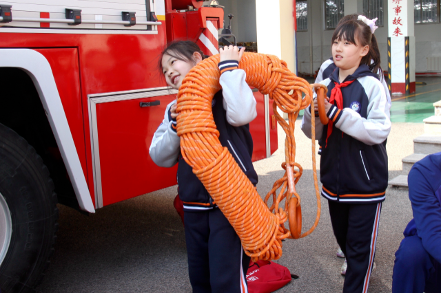 為增強學(xué)生的安全意識,3月13日,山東省威海市文登經(jīng)濟開發(fā)區(qū)小學(xué)開展“安全伴我行”主題教育活動,小學(xué)生們走進威海消防救援大隊文登支隊基地,學(xué)習(xí)消防救援安全知識和技能,了解各種器材功能和使用方法,提高自我保護和自我救援的能力。中國教育報-中國教育新聞網(wǎng)通訊員 宋永強 攝