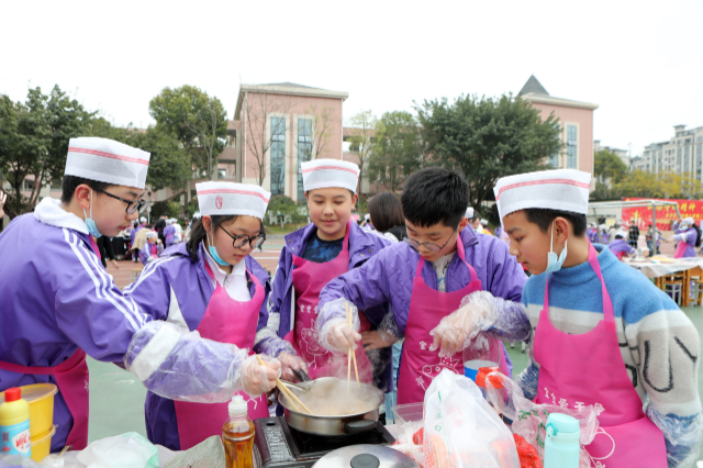 3月15日,重慶市永川區(qū)興龍湖小學第二屆勞動技能大賽六年級組的美食烹飪,在校園操場有序進行。賽場上,六年級學生在老師和家長的配合下,準備食材、烹飪炒制、調(diào)味裝盤??現(xiàn)場菜香四溢,一派忙碌景象。烹飪大賽主要對學生們的配菜、烹制熟練程度、盛裝、菜肴的形色香味、操作臺及場地的清理等方面進行評比。大賽旨在培養(yǎng)學生的生活技能和自理能力,樹立學生“自己的事情自己做”的自主意識,激發(fā)學生熱愛勞動的情感,讓學生在勞逸結(jié)合中全面發(fā)展。中國教育報-中國教育新聞網(wǎng)通訊員 陳仕川 攝