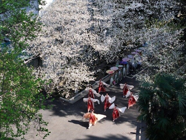 3月26日,浙江省東陽(yáng)市職業(yè)教育中心學(xué)校東技校區(qū)在校內(nèi)舉行了“櫻蕓而升·花韻東技”校園櫻花節(jié)活動(dòng)。身姿妙曼的同學(xué)們穿上古色古香的服裝,在櫻花樹(shù)下或是走秀,或是跳舞,甚是唯美。茶藝表演、花藝布置、櫻花燈展、趣味游戲等活動(dòng)得到了師生們的青睞。中國(guó)教育報(bào)-中國(guó)教育新聞網(wǎng)通訊員 胡揚(yáng)輝 夏曉萍 攝