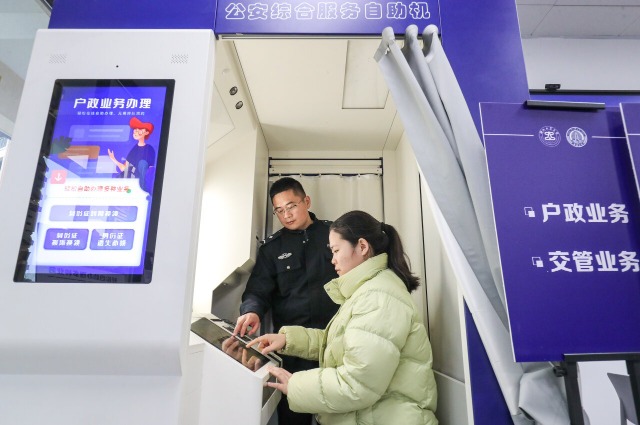 近日,浙江省湖州市德清縣公安局康乾派出所聯(lián)合浙江工業(yè)大學(xué)莫干山校區(qū)正式啟用共富警務(wù)工大驛站,這也是浙江省首個(gè)共富警務(wù)高校驛站。驛站的24小時(shí)自助服務(wù)終端設(shè)備能為師生提供戶政、交管、出入境等近20項(xiàng)便民服務(wù)事項(xiàng),足不出校就能共享便捷服務(wù),打通服務(wù)師生“最后一公里”。中國(guó)教育報(bào)-中國(guó)教育新聞網(wǎng)通訊員 王樹(shù)成 攝