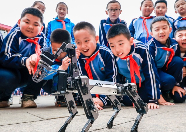 學(xué)生觀看“機器狗”表演 通訊員 丁根厚 攝