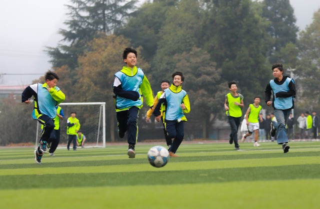 學生進行足球比賽 通訊員 周訓超 攝