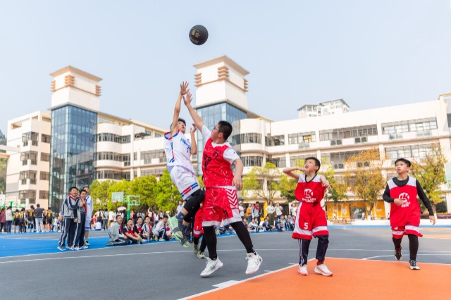2024年4月2日,浙江省溫州市第二實驗小學(xué)舉行的校園籃球班級聯(lián)賽中,學(xué)生在進行籃球比賽。近年來,浙江省溫州市第二實驗小學(xué)大力開展校園籃球運動,開設(shè)籃球訓(xùn)練社團、舉行籃球聯(lián)賽等活動,讓學(xué)生在“雙減”中享受籃球運動樂趣,既促進了身體和心理健康水平穩(wěn)步提升,又增添了校園活力。(中國教育報-中國教育新聞網(wǎng) 通訊員 劉吉利 攝)