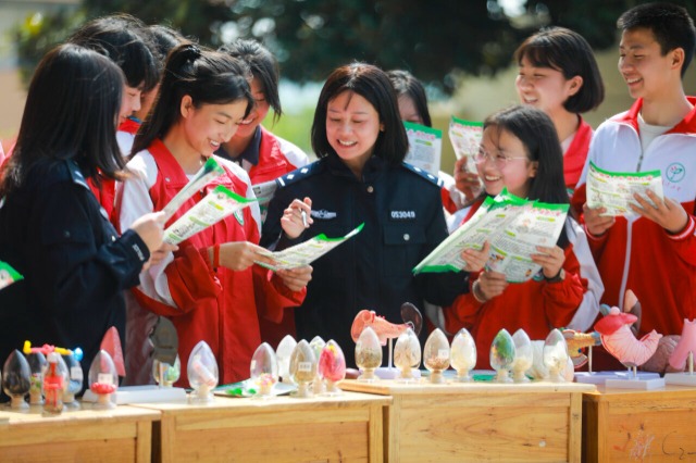 2024年4月2日,貴州省黔西市公安局禁毒大隊(duì)走進(jìn)轄區(qū)內(nèi)的鐘山鎮(zhèn)鐘山中學(xué),應(yīng)用學(xué)校的課間開(kāi)展“禁毒守護(hù)·關(guān)愛(ài)未來(lái)”禁毒知識(shí)宣傳活動(dòng),活動(dòng)中民警運(yùn)用禁毒宣傳資料、仿真毒品樣本,正常人與吸毒者身體器官對(duì)比模型,幫助學(xué)生識(shí)別毒品,了解毒品對(duì)個(gè)人及社會(huì)的危害,引導(dǎo)學(xué)生珍愛(ài)生命、遠(yuǎn)離毒品。(中國(guó)教育報(bào)-中國(guó)教育新聞網(wǎng) 通訊員 周訓(xùn)超 攝)