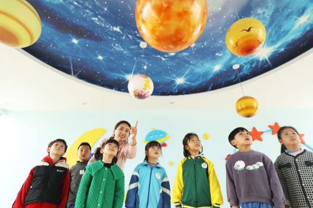 老師向小朋友們介紹航空航天知識。通訊員 朱大勇 攝