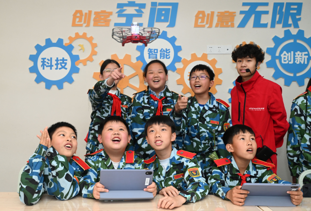 學(xué)生體驗(yàn)操控?zé)o人機(jī)。通訊員 蘭自濤 攝