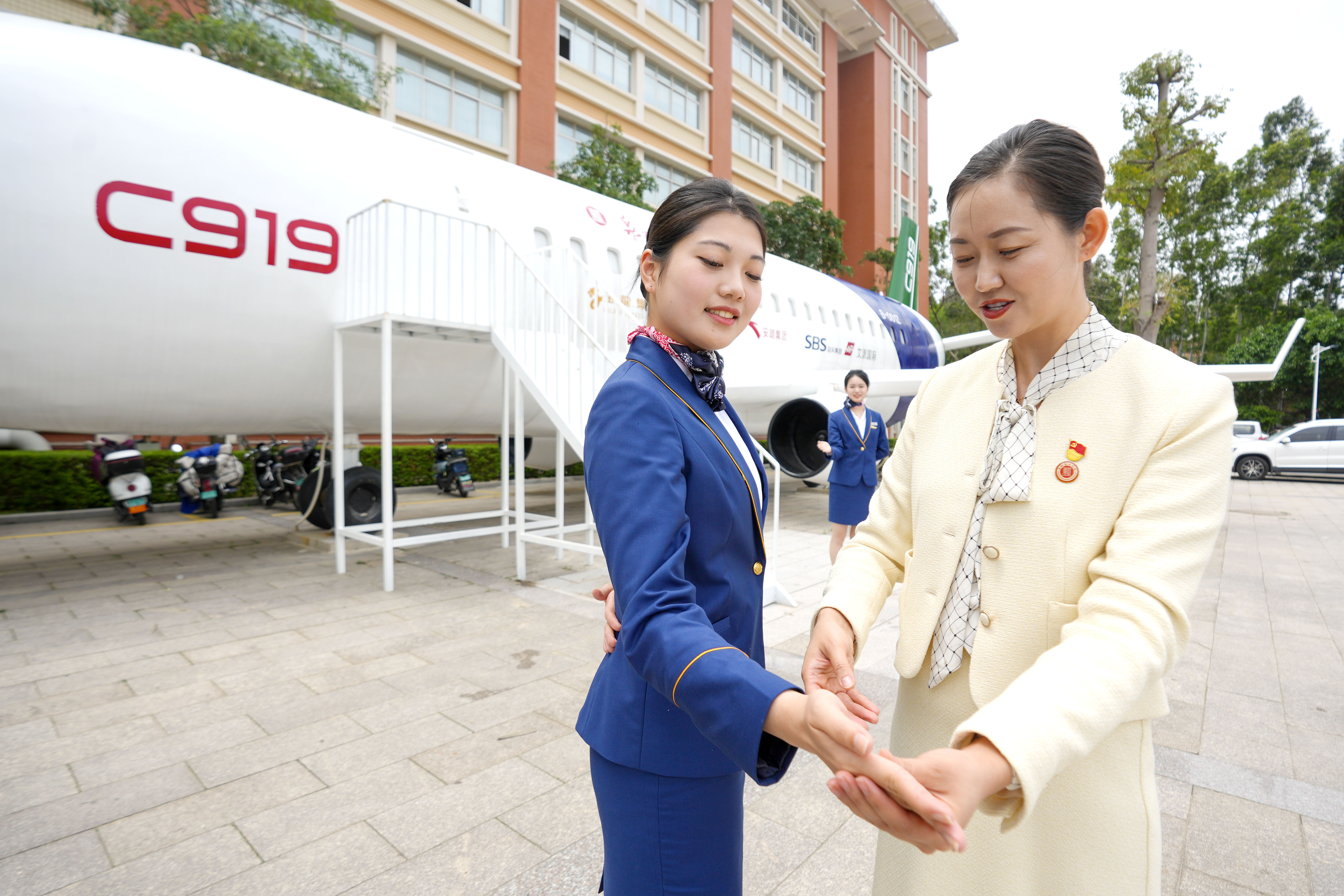近日,福建省晉江市,泉州輕工職業(yè)學(xué)院新配置的國產(chǎn)大飛機(jī)C919同款航空模擬機(jī)艙內(nèi),空中乘務(wù)專業(yè)的學(xué)生正在進(jìn)行嚴(yán)格、細(xì)致的實(shí)操訓(xùn)練。 近年來,泉州輕工職業(yè)學(xué)院立足紡織、鞋服技術(shù)發(fā)展優(yōu)勢和海陸空區(qū)域商貿(mào)人員往來頻繁特點(diǎn),大力發(fā)展職業(yè)教育,構(gòu)建校企合作一體化育人模式,實(shí)行“訂單式”辦學(xué),暢通就學(xué)與就業(yè)直通渠道,培育優(yōu)秀職業(yè)人才,促進(jìn)區(qū)域經(jīng)濟(jì)發(fā)展。 中國教育報(bào)-中國教育新聞網(wǎng)通訊員 謝貴明 攝