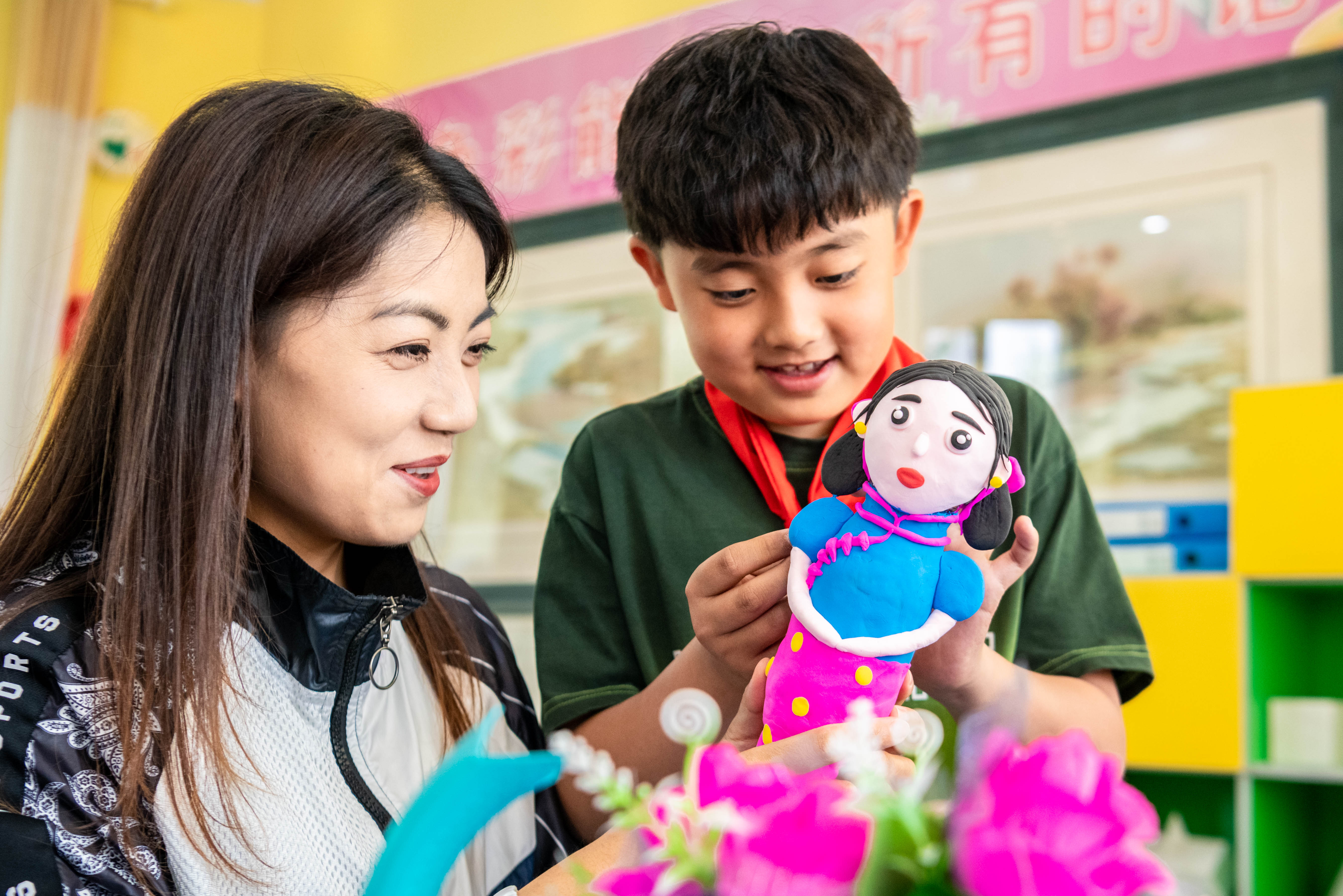 學(xué)生和媽媽一起制作母親節(jié)禮物。通訊員 丁根厚 攝