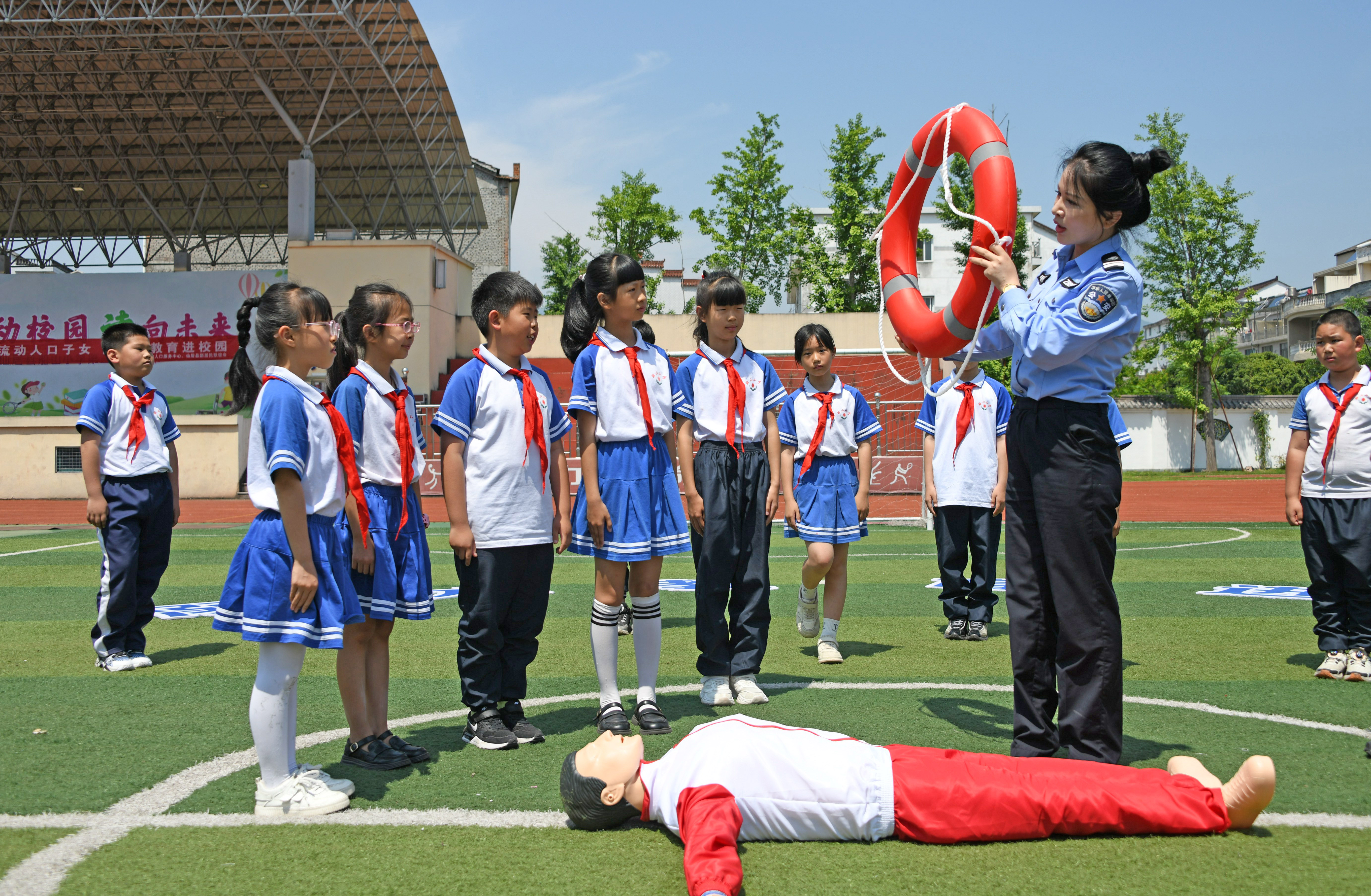 公安民警向?qū)W生講解防溺水和心肺復(fù)蘇急救等知識。通訊員 王華斌 攝