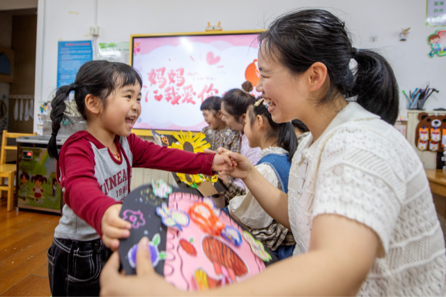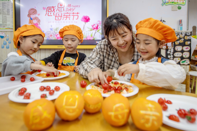 2024年5月11日,浙江省湖州市長(zhǎng)興縣龍山幼兒園開展“獻(xiàn)給媽媽的愛”母親節(jié)活動(dòng),小朋友們做卡片、編紙花、做拼盤,并贈(zèng)送給媽媽,表達(dá)對(duì)母親的敬意和愛意,迎接母親節(jié)的到來。(中國(guó)教育報(bào)-中國(guó)教育新聞網(wǎng) 通訊員 譚云俸 攝)