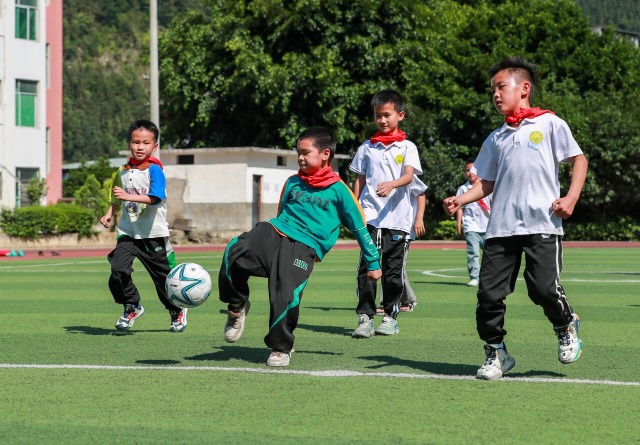 近年來,貴州省黔東南苗族侗族自治州從江縣將足球運動引入中小學課程教學,通過完善基礎設施、組建足球興趣小組、舉辦足球比賽等方式,讓更多大山里的孩子學習足球知識,參與足球運動,享受足球運動帶來的樂趣。中國教育報-中國教育新聞網(wǎng)通訊員 羅京來 攝