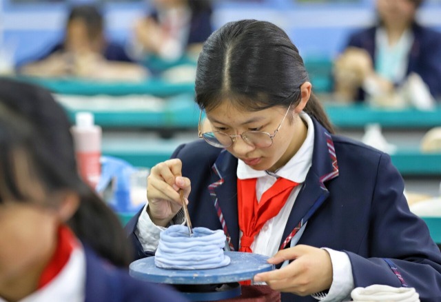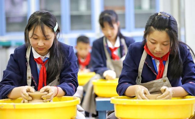 5月13日,在江蘇省海安市李堡鎮(zhèn)中心小學,學生在陶藝課上體驗陶藝制作,領略傳統(tǒng)文化的魅力。近年來,海安市李堡鎮(zhèn)中心小學將中華優(yōu)秀傳統(tǒng)文化融入思政教育,積極打造傳統(tǒng)文化特色課程,啟智潤心,讓學生在多彩校園里快樂學習、健康成長。中國教育報-中國教育新聞網通訊員 周強 攝