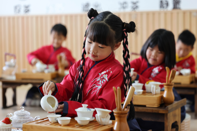 5月13日,江蘇省連云港市連云區(qū)宿城街道高莊村聯(lián)合宿城中心幼兒園,在茶藝館組織茶鄉(xiāng)娃娃開(kāi)展“知禮儀 學(xué)茶藝 揚(yáng)家風(fēng)”親子活動(dòng)。在茶藝師指導(dǎo)下,家長(zhǎng)和孩子一起學(xué)習(xí)茶葉知識(shí)、茶藝技能,舉行親子互動(dòng)奉茶禮,學(xué)會(huì)珍惜家庭的溫暖與幸福,感受茶鄉(xiāng)悠久的茶文化魅力。中國(guó)教育報(bào)-中國(guó)教育新聞網(wǎng)通訊員 朱華南 攝