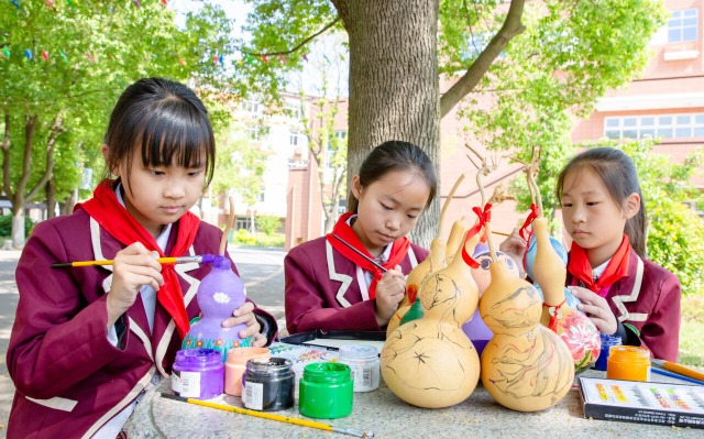 學(xué)生在葫蘆上畫畫。通訊員 向中林 攝