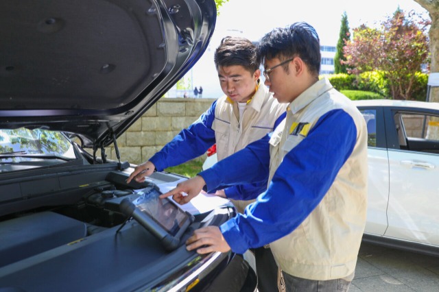 新能源汽車技術(shù)專業(yè)學(xué)生在做汽車通訊線路測試。中國教育報-中國教育新聞網(wǎng)記者 單藝偉 攝