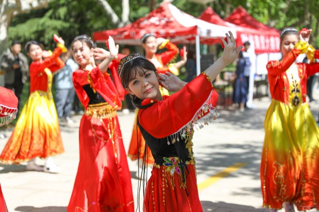 來自新疆協(xié)同培優(yōu)班的學(xué)生在表演民族舞蹈。中國教育報-中國教育新聞網(wǎng)記者 單藝偉 攝