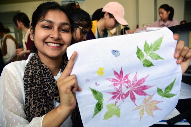 江蘇大學(xué)的中外大學(xué)生一起制作中草藥拓印 通訊員 石玉成 攝