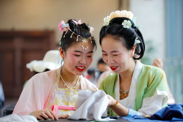 5月18日,適逢國(guó)際博物館日,一場(chǎng)主題為“古藝傳承 布繡繁華”的手工刺繡活動(dòng)正在福建省福清市博物館內(nèi)舉行,不少家長(zhǎng)帶著孩子前來(lái)學(xué)習(xí)國(guó)家級(jí)非物質(zhì)文化遺產(chǎn)項(xiàng)目廣繡技藝,感受非遺獨(dú)特魅力。中國(guó)教育報(bào)-中國(guó)教育新聞網(wǎng)通訊員 謝貴明 攝