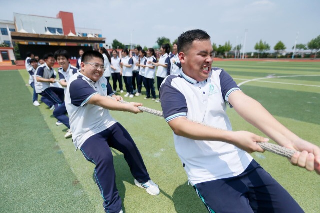 青島通濟實驗學校高三學生在進行拔河比賽 通訊員 梁孝鵬 攝