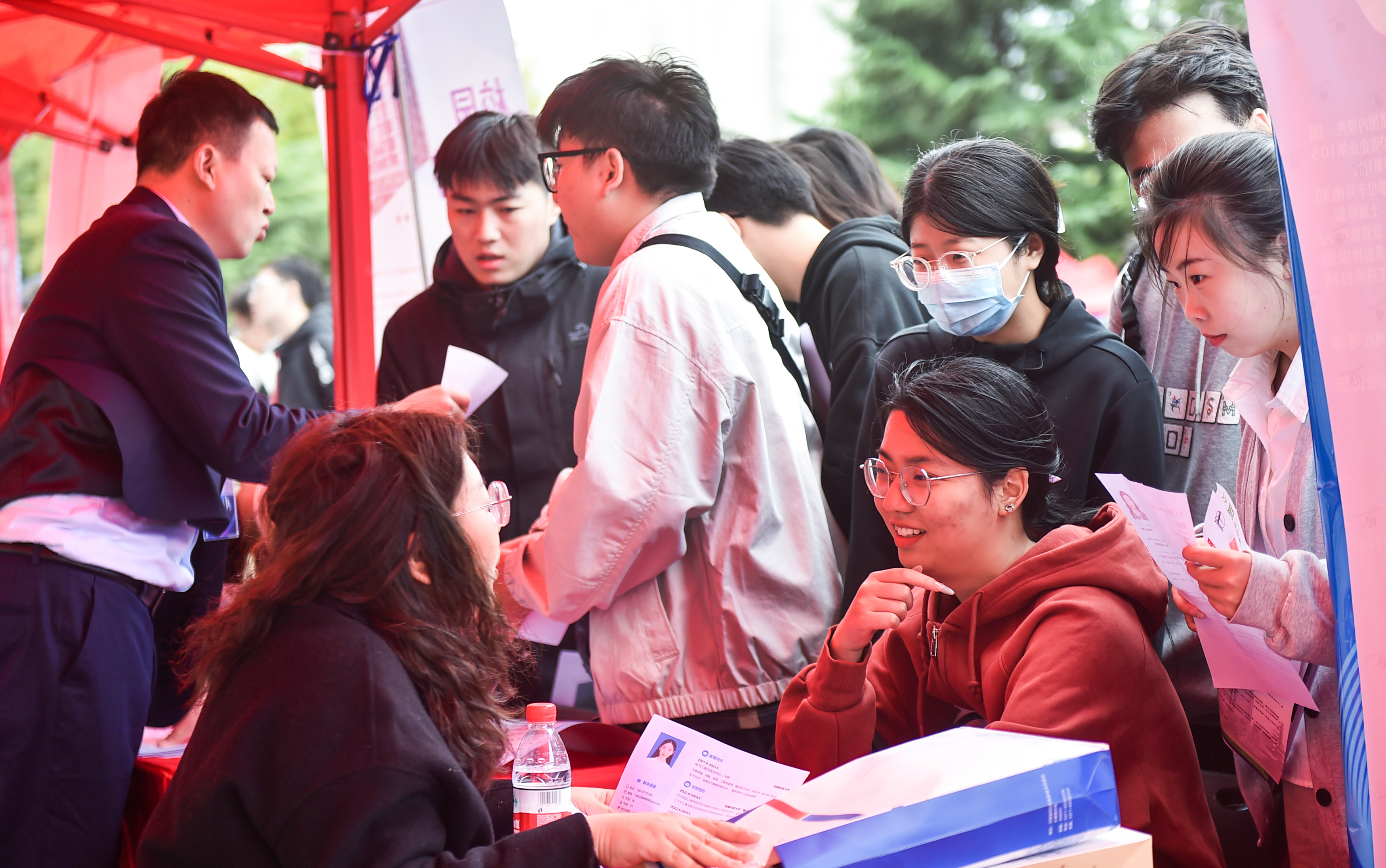大學生求職者在咨詢相關崗位信息。黃政偉 攝
