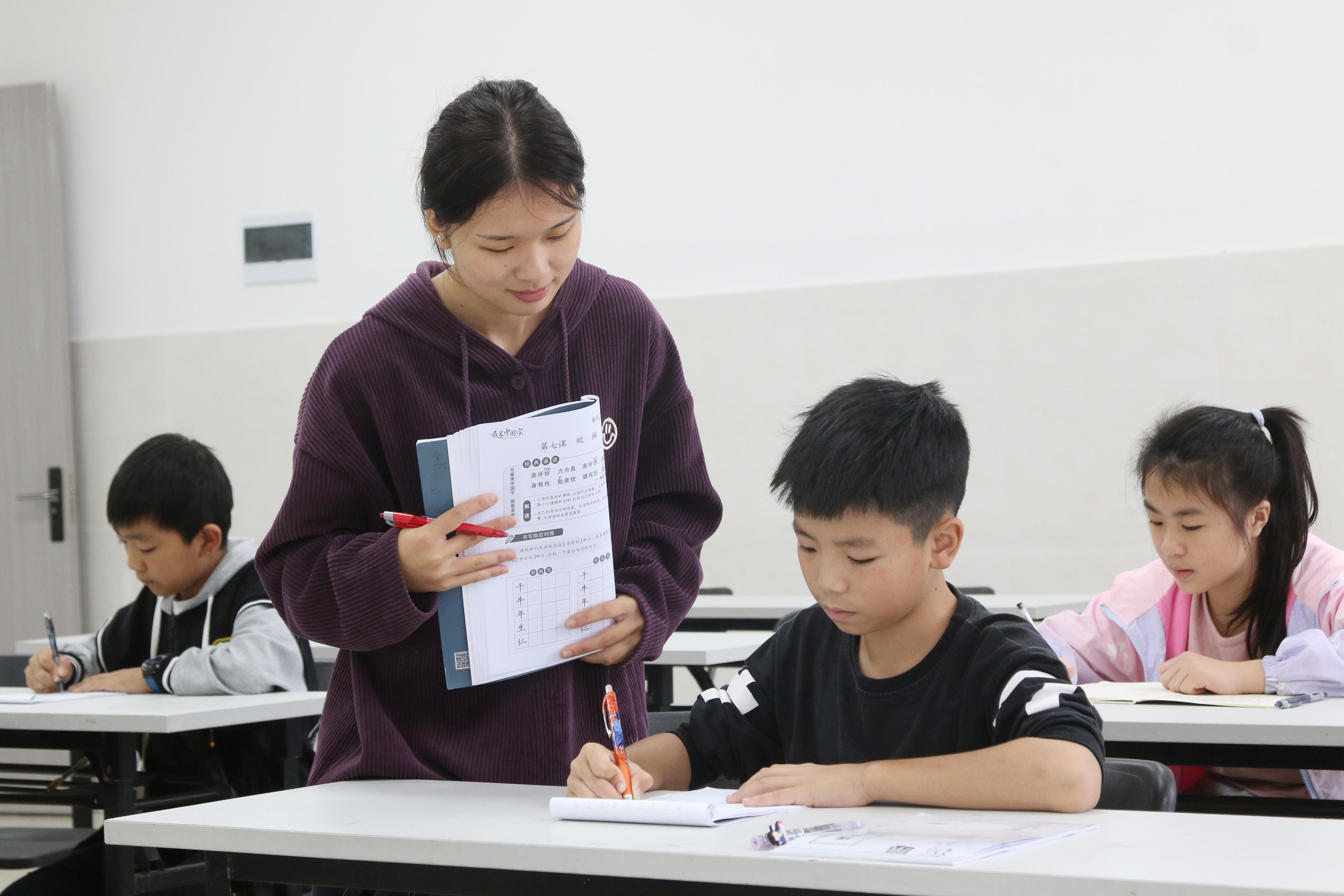10月20日,在湖南省永州市寧遠(yuǎn)縣文化館開(kāi)設(shè)的秋季免費(fèi)書法培訓(xùn)班上,孩子們?cè)诶蠋煹闹笇?dǎo)下學(xué)習(xí)寫字。李萍 攝