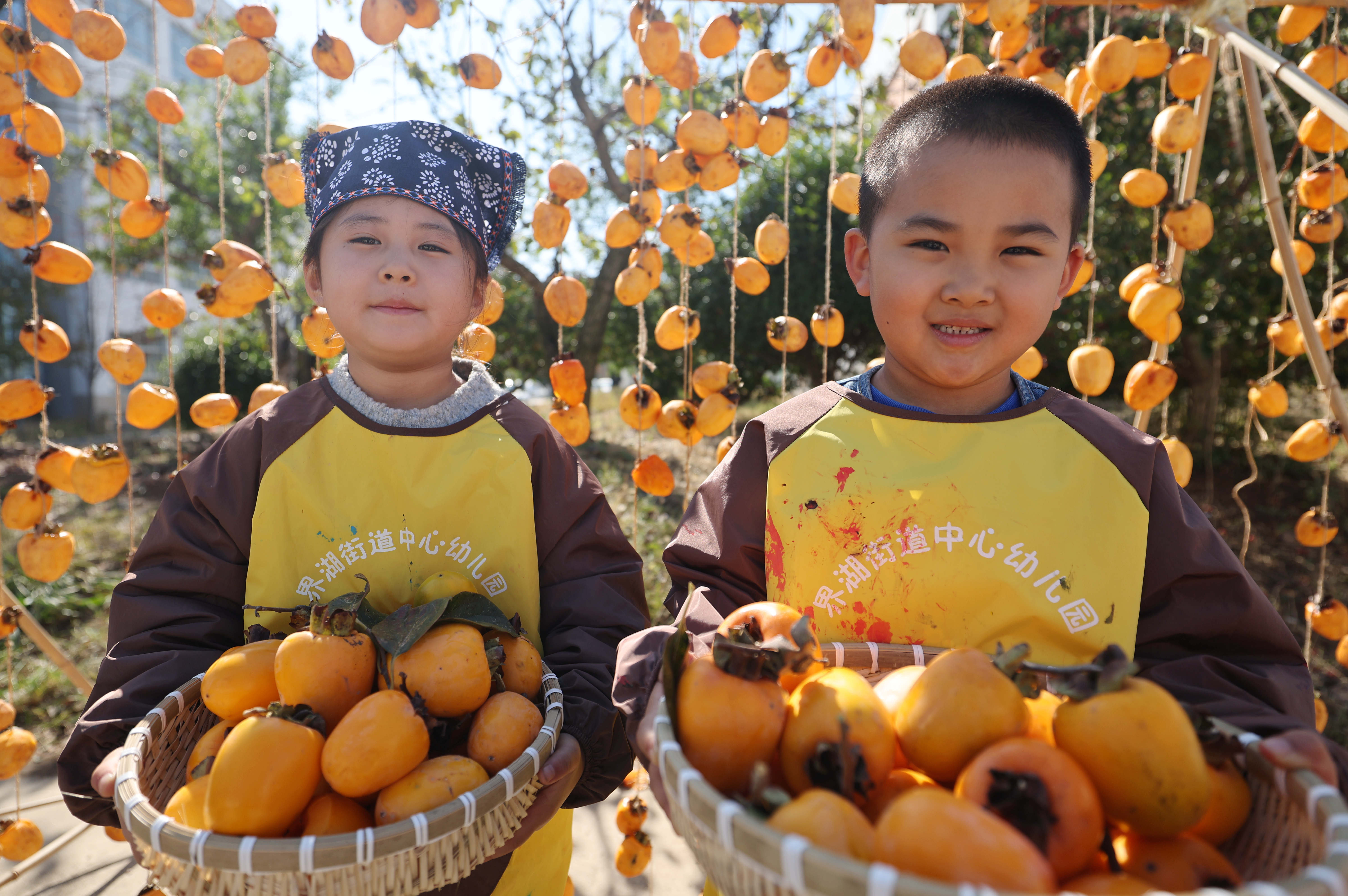 10月23日是二十四節(jié)氣中的霜降,在山東省臨沂市沂南縣界湖街道中心幼兒園,孩子們?cè)诶蠋煹膸ьI(lǐng)下,來到校園柿子樹下忙著采收、削皮、晾曬,加工柿餅,孩子們?cè)趧趧?dòng)收獲中感受傳統(tǒng)民俗節(jié)氣的獨(dú)特魅力,迎接霜降的到來。(中國(guó)教育報(bào)-中國(guó)教育新聞網(wǎng)通訊員 王彥冰 劉艷麗 攝)