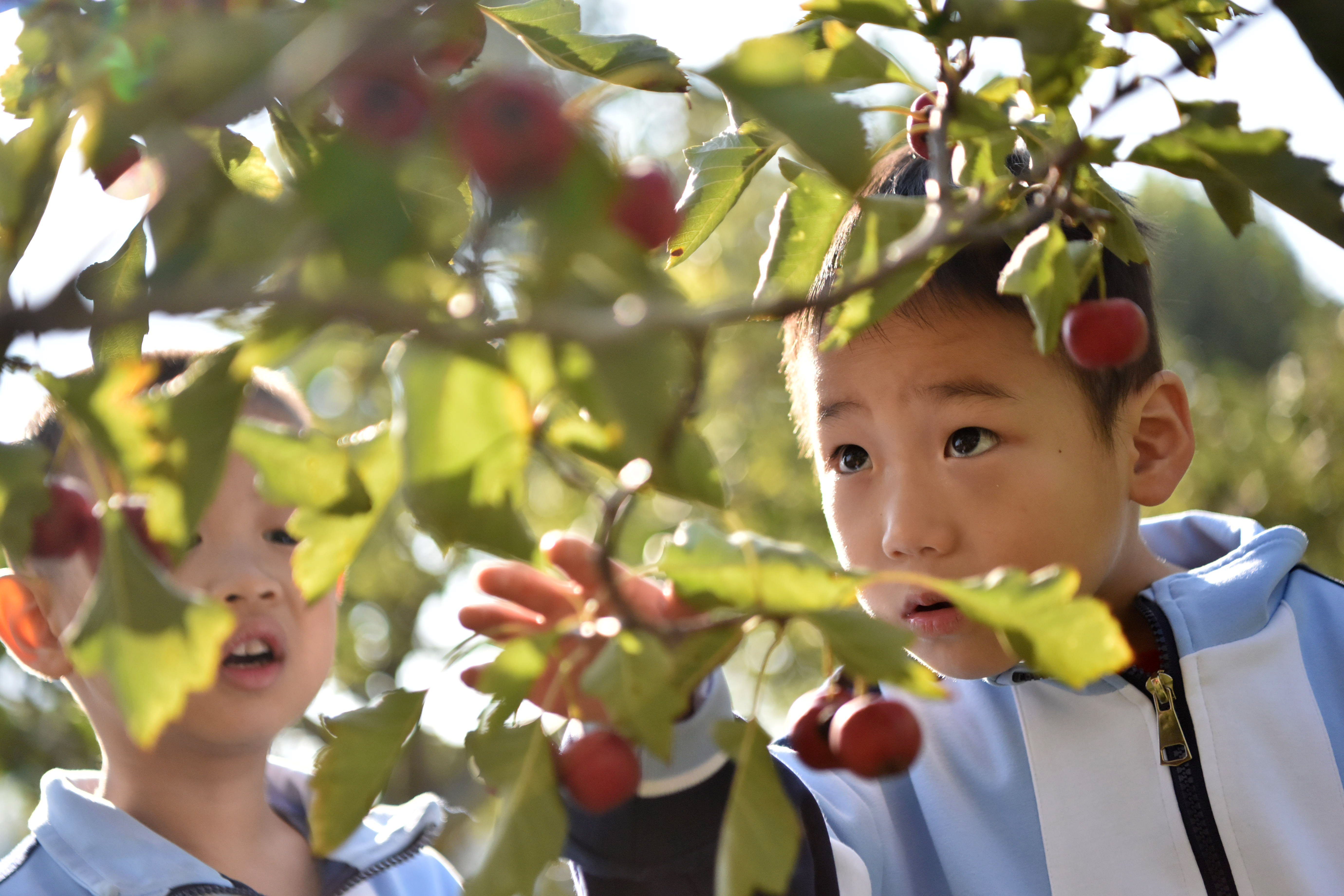 10月23日,正值霜降節(jié)氣,校園農(nóng)場山楂紅,山東省高密市金蘋果幼兒園的孩子們在老師帶領(lǐng)下,來到校園山楂樹下,了解山楂果實(shí)的形狀、顏色,摘山楂、品山楂,體驗(yàn)勞動(dòng)的快樂和收獲的喜悅。(中國教育報(bào)-中國教育新聞網(wǎng)通訊員 李海濤 攝)