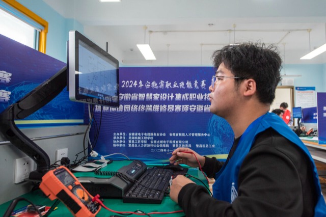 11月14日,第九屆安徽省智慧家設(shè)計(jì)集成職業(yè)技能競(jìng)賽信息通信網(wǎng)絡(luò)終端維修員賽項(xiàng)在蕪湖市繁昌區(qū)蕪湖機(jī)械工程學(xué)校開(kāi)賽,來(lái)自安徽省各地近20名職教學(xué)生參加了學(xué)生組比賽。近年來(lái),安徽省高度重視職業(yè)教育,積極推動(dòng)現(xiàn)代職業(yè)教育“一體兩翼五重點(diǎn)”建設(shè)改革,通過(guò)“以賽促學(xué)、以賽促教、以賽促改、以賽促建”,宣傳展示職業(yè)教育服務(wù)人的全面發(fā)展、服務(wù)經(jīng)濟(jì)社會(huì)發(fā)展所取得的重大改革成果,大力宣傳勞模精神、勞動(dòng)精神、工匠精神,弘揚(yáng)勞動(dòng)光榮、技能寶貴、創(chuàng)造偉大的時(shí)代風(fēng)尚。(中國(guó)教育報(bào)-中國(guó)教育新聞網(wǎng) 通訊員 肖本祥 攝)