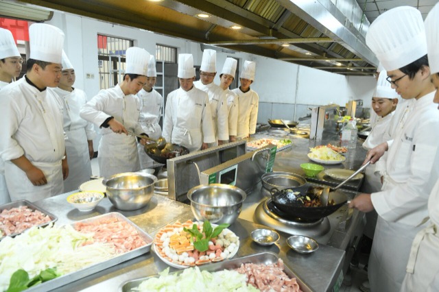 學(xué)生在實(shí)訓(xùn)室內(nèi)學(xué)習(xí)烹飪技能知識(shí) 王彪 攝