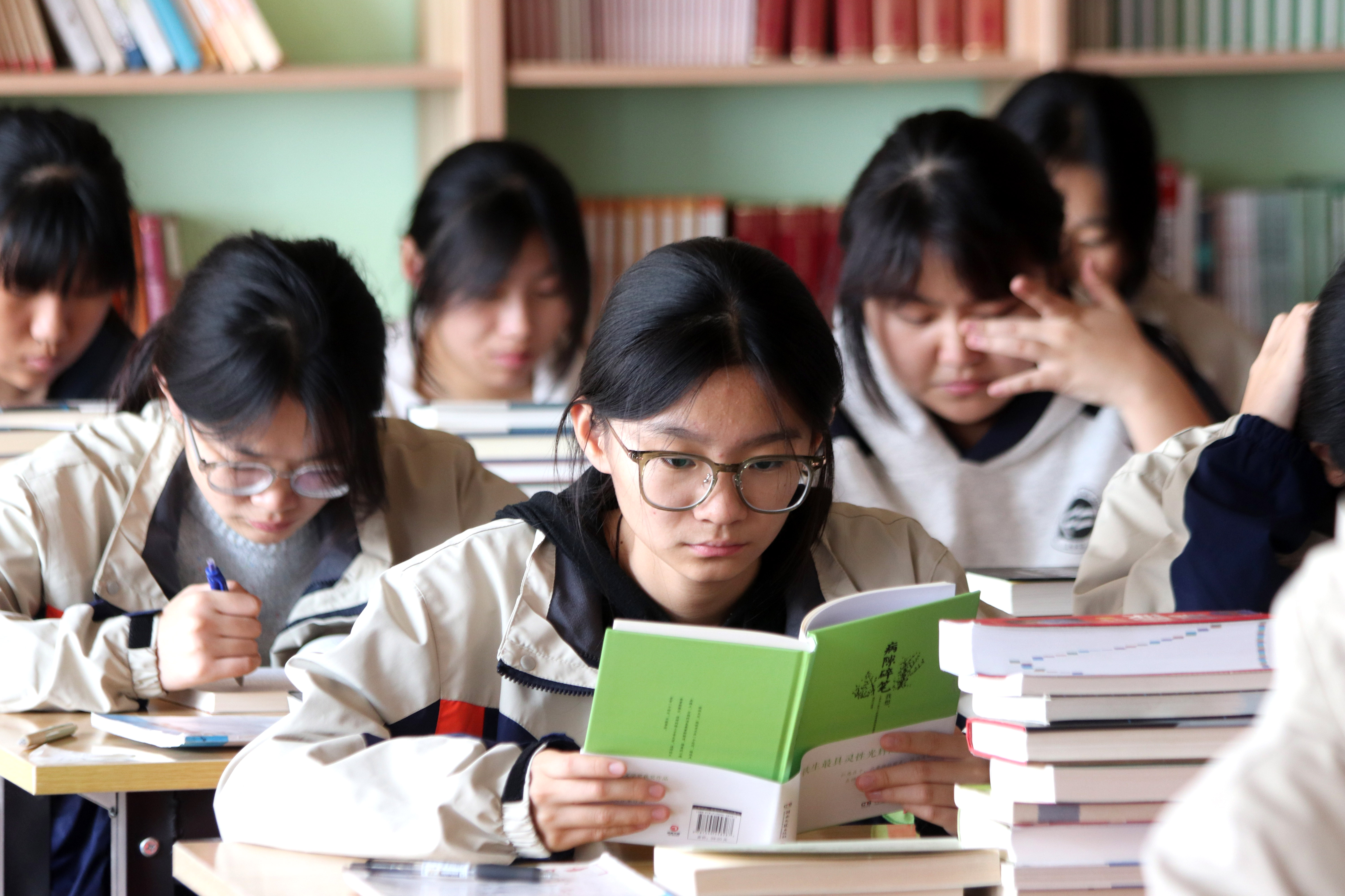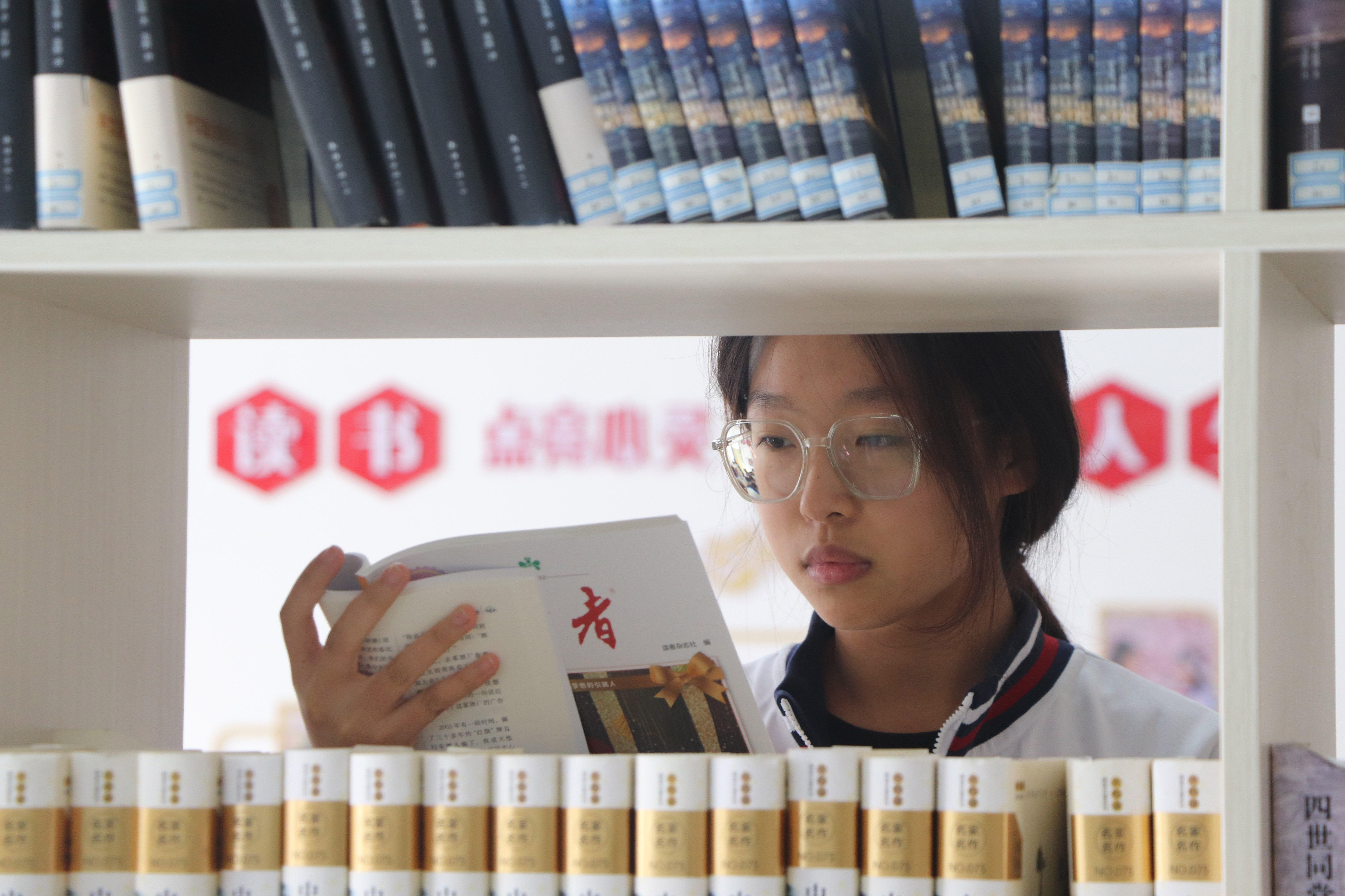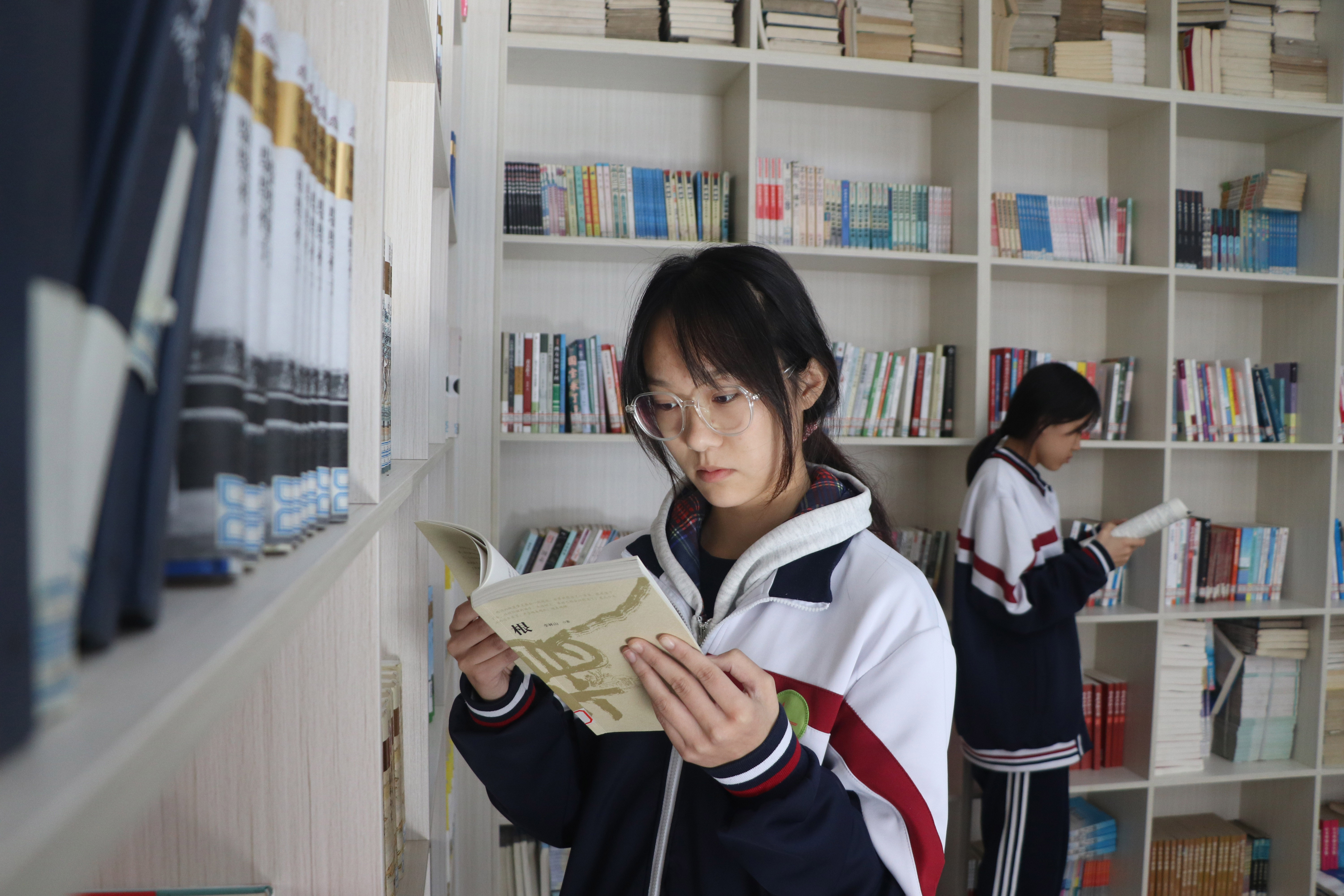 近日,山東省高密市第五中學推進書香校園建設,通過好書我推薦、課前名著導讀、閱讀課等形式,引導中學生多讀書、讀好書,在校園中營造濃厚的書香氛圍。(中國教育報-中國教育新聞網通訊員 李海濤 攝)