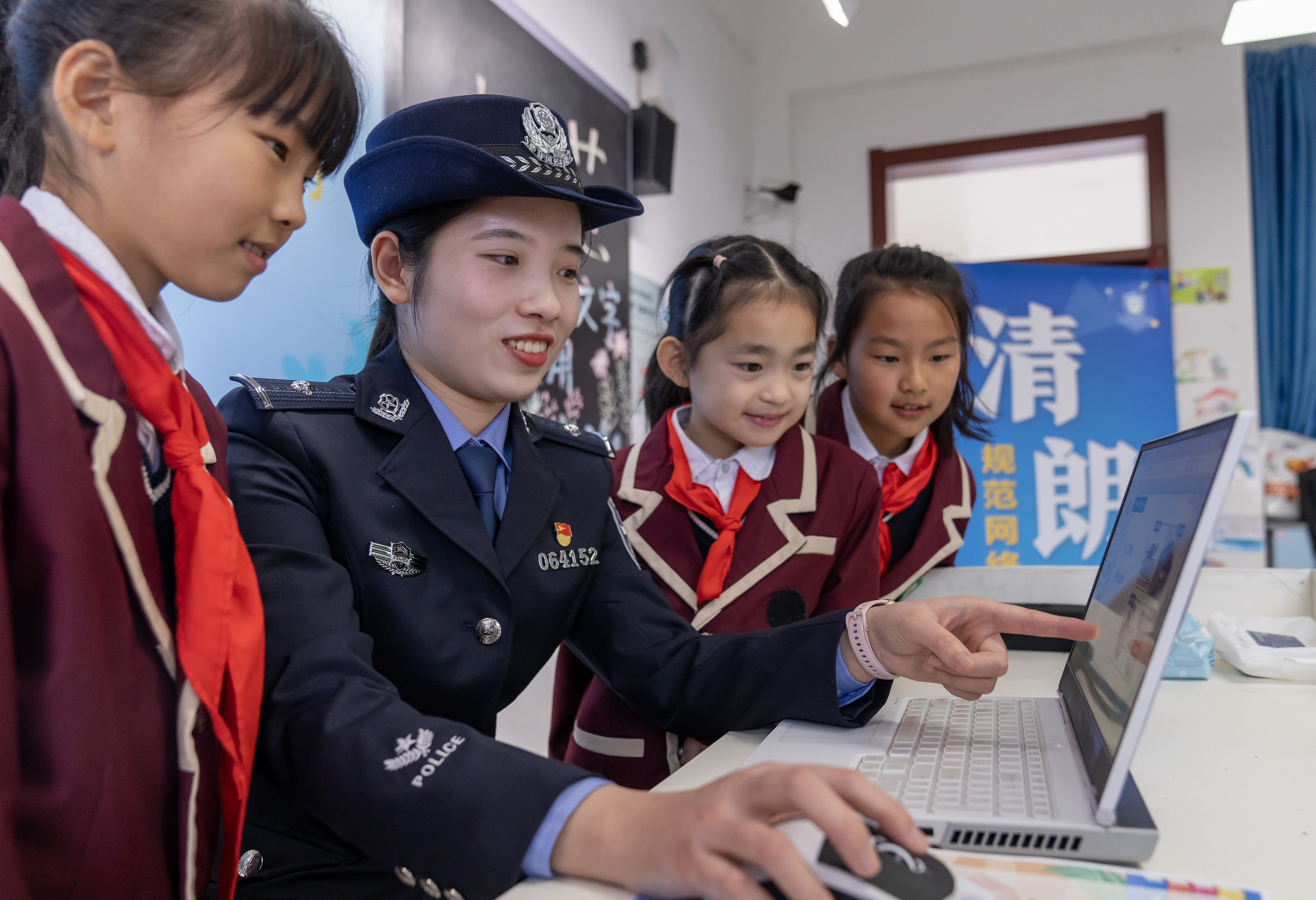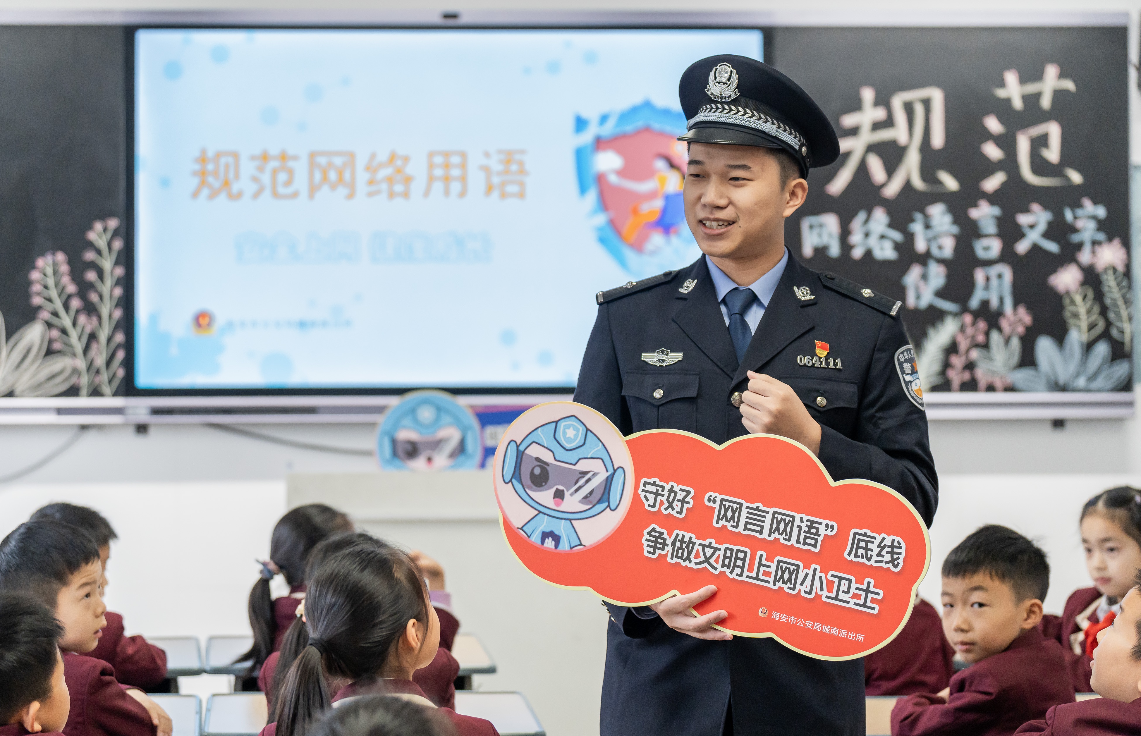 11月19日,江蘇省海安高新區(qū)實(shí)驗(yàn)小學(xué)與海安市公安局城南派出所聯(lián)合開(kāi)展“清朗·規(guī)范網(wǎng)絡(luò)語(yǔ)言文字使用”主題宣傳活動(dòng)。民警通過(guò)互動(dòng)課堂、趣味游戲、發(fā)放倡議書(shū)等形式,向?qū)W生們講解不規(guī)范、不文明網(wǎng)絡(luò)用語(yǔ)的危害,引導(dǎo)學(xué)生們文明健康上網(wǎng),規(guī)范使用語(yǔ)言文字,傳播網(wǎng)絡(luò)正能量,當(dāng)好清朗有序網(wǎng)絡(luò)空間的“小衛(wèi)士”。(中國(guó)教育報(bào)-中國(guó)教育新聞網(wǎng)通訊員 翟偉凱 攝)