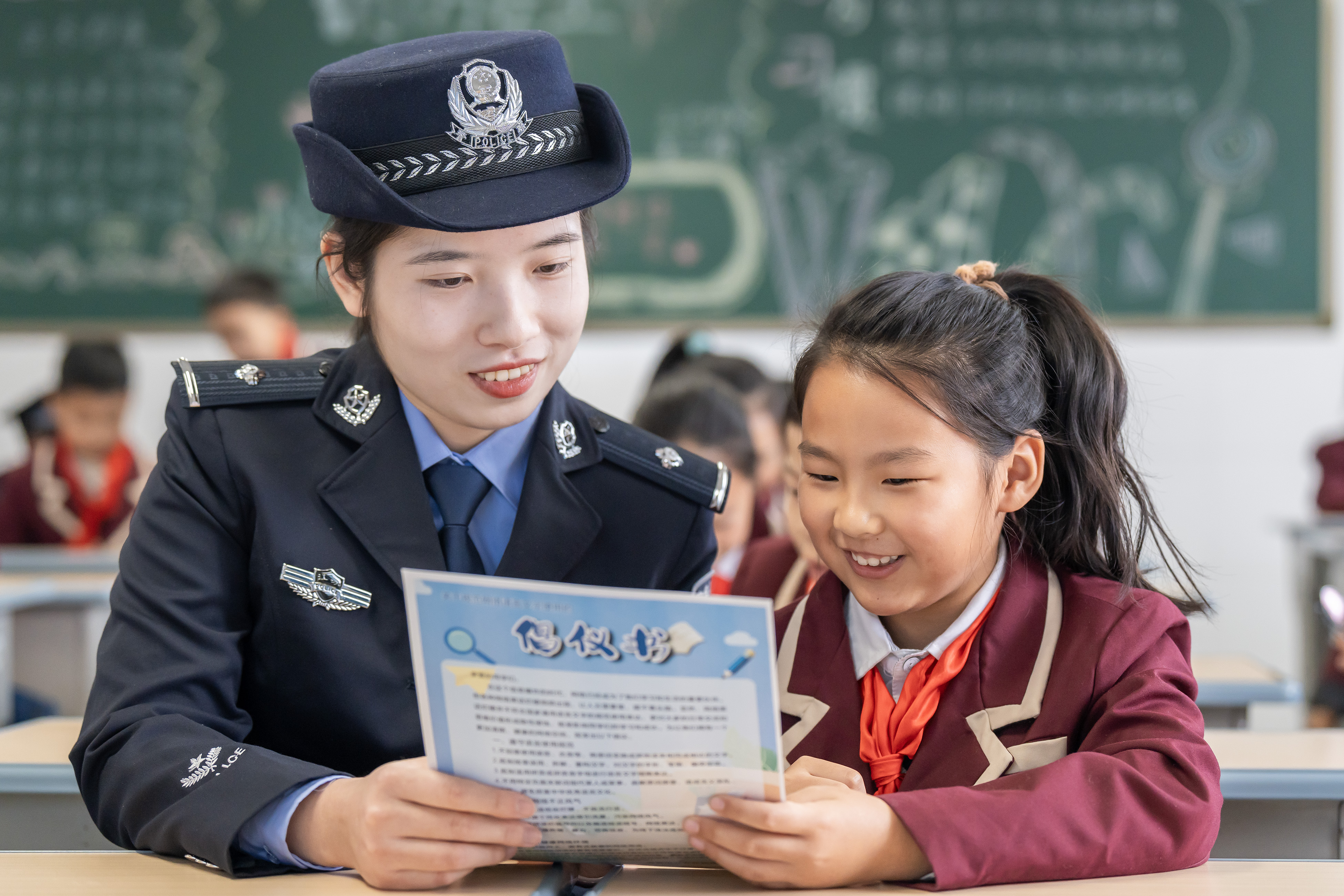 11月19日,民警對(duì)小學(xué)生開(kāi)展“清朗·規(guī)范網(wǎng)絡(luò)語(yǔ)言文字使用”主題宣傳。翟偉凱 攝