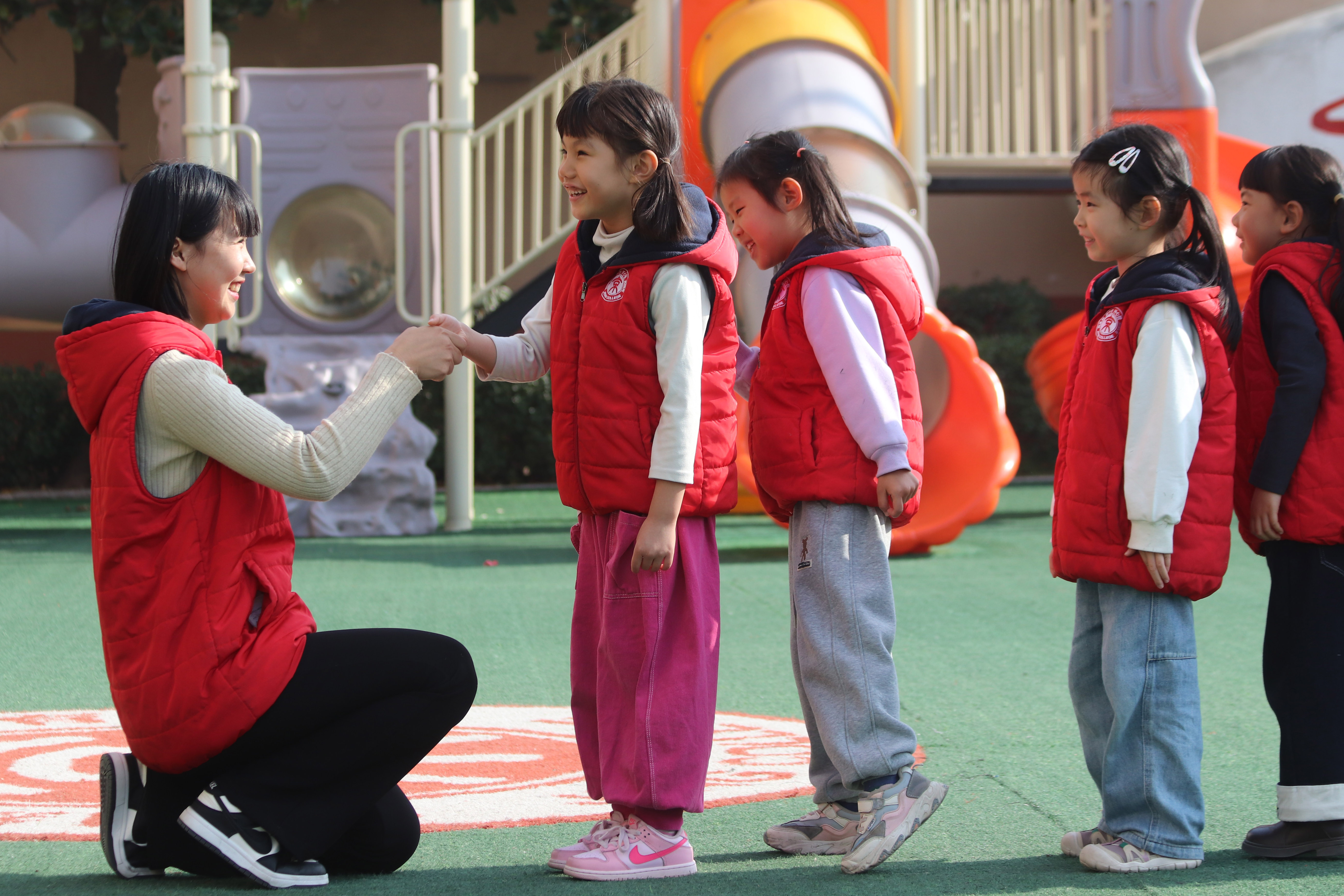 11月21日是“世界問候日”,山東省高密市榮科幼兒園開展“驅(qū)散初冬寒冷 傳遞溫暖問候”主題教育活動(dòng),小朋友們通過擁抱、打招呼、互致問候、學(xué)習(xí)禮儀等方式,表達(dá)祝福、傳遞溫情。(中國教育報(bào)-中國教育新聞網(wǎng)通訊員 李海濤 攝)