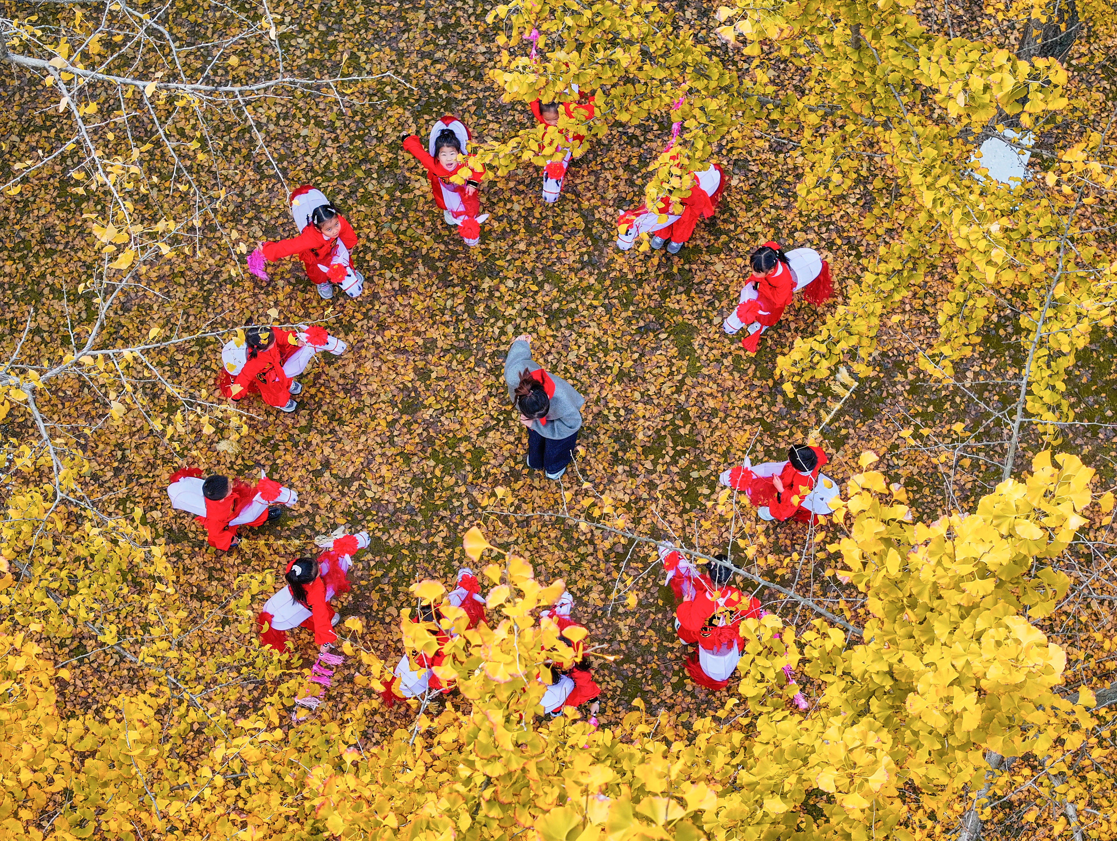 浙江省湖州市長(zhǎng)興縣開(kāi)發(fā)區(qū)實(shí)驗(yàn)幼兒園把課堂移到銀杏林中,通過(guò)體驗(yàn)學(xué)習(xí)來(lái)傳承中華優(yōu)秀傳統(tǒng)文化,感受大自然的美好。(中國(guó)教育報(bào)-中國(guó)教育新聞網(wǎng)通訊員 陳海偉 攝)