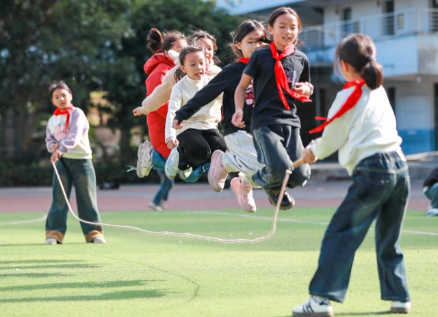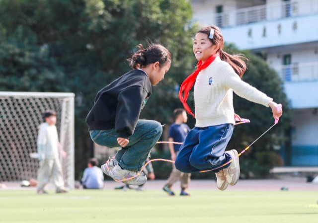 學(xué)生在體育課上跳繩。通訊員 羅京來 攝