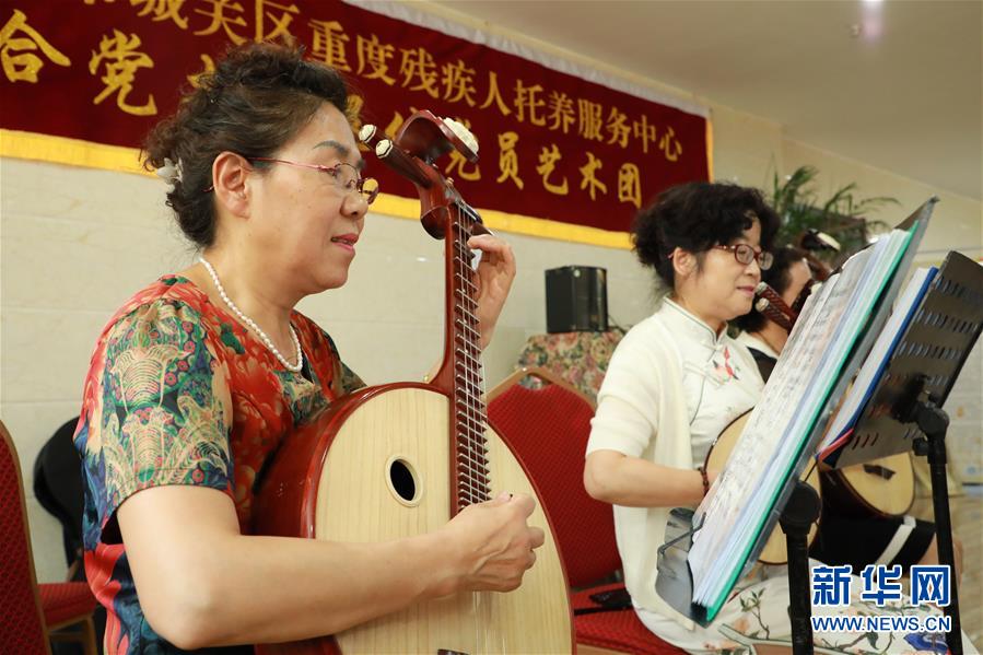 蘭州市民在虛擬養(yǎng)老院一處排練室演奏(7月31日攝)。新華社記者 梁軍 攝