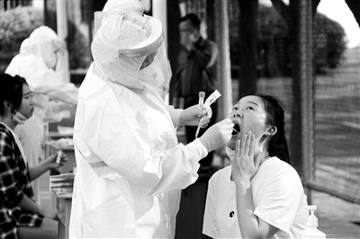近日,湖北省丹江口市人民醫(yī)院派出醫(yī)護(hù)人員,對漢江科技學(xué)校首批返校的648名學(xué)生統(tǒng)一進(jìn)行了核酸檢測,確保人人都測、一個(gè)不漏。圖為醫(yī)護(hù)人員正在為學(xué)生采集咽拭子取樣檢測。錢芹 攝